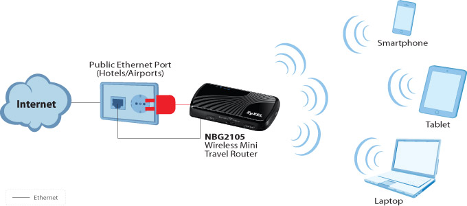 طراحی فوق فشرده NBG2105 آن را به یک راهکار سیار برای سفرهای کاری تبدیل کرده است. در هتل هایی که تنها اتصالات سیمی به اینترنت دارد، این راهکار به راحتی می تواند اتصال وایرلس را برای دستگاه های وای فای شما نظیر لپ تاپ، گوشی هوشمند و تبلت فراهم آورد. تامین برق آن می تواند از طریق USB انجام پذیرد. هم چنین یک کیسه مخصوص سفر برای راحتی شما در مهیا شده است.نصب آسان شبکه وایرلس