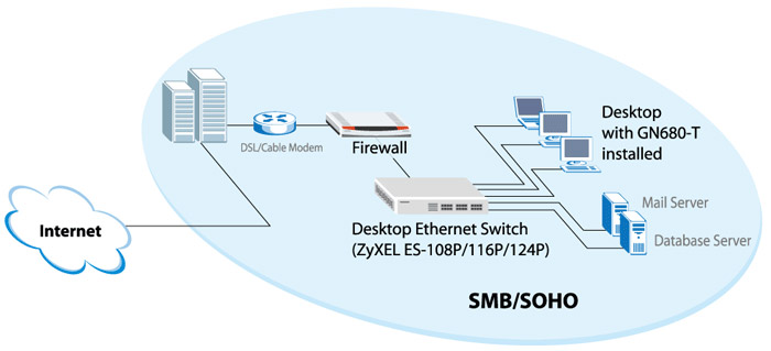 اندازه کم حجم آن با فضای کاری شما در تناسب است. علاوه براین، ES-116P/124P قابل نصب در رک بوده که بر میزان انعطاف پذیری به هنگام نصب می افزاید. مجموعه سوییچ دسکتاپ اترنت زایکسل صرف نظر از کاربودن شبکه شما به واسطه امکان توکار بودن منبع برق، راهکاری قابل اطمینان و مقرون به صرفه به ویژه برای شبکه های SOHO و اداره های کوچک است.نمودار کاربری