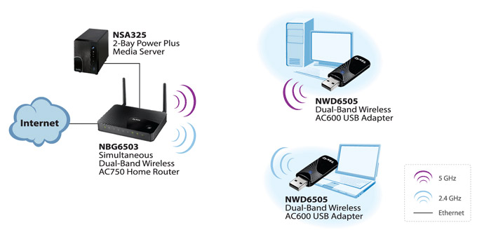 زایکسل NWD6505 دو باند قابل انتخاب برای امواج بیسیم را ارائه میکند (2.4 گیگاهرتز و 5 گیگاهرتز) تا به کاربر اجازه بدهد از ارتباط بهتری بر روی شبکه بهرهمند گردد. باند 5 گیگاهرتزی برای کاربریهای مبتنی بر امور چندرسانهای مانند پخش ویدیوهای HD و انجام بازیهای کامپیوتری آنلاین مناسب است. در عین حال باند 2.4 گیگاهرتزی برای وبگردی و ارتباط تلفنی VoIP بدون کاهش بهرهوری، مناسب خواهد بود.تنظیمات آسان امینتی
